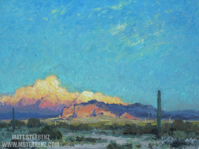"Monsoon Over The Superstitions" Oil on Linen, 12x16 inches.